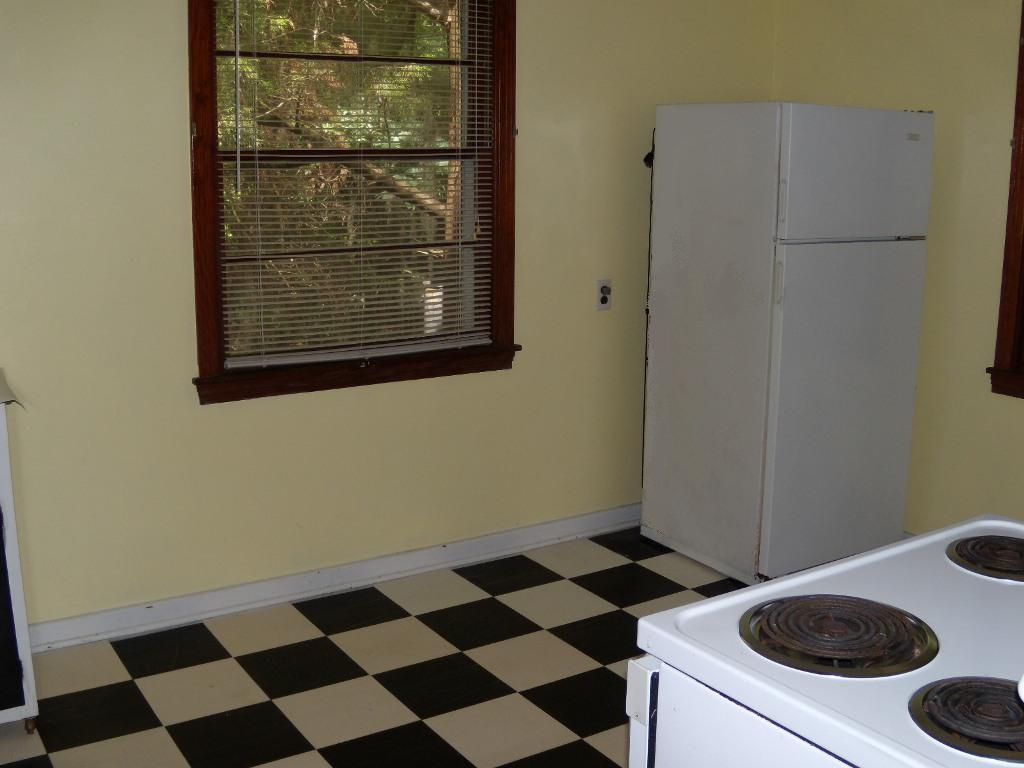 Finished heart pine throughout, vinyl bath & kitchen, painted pine in laundry area