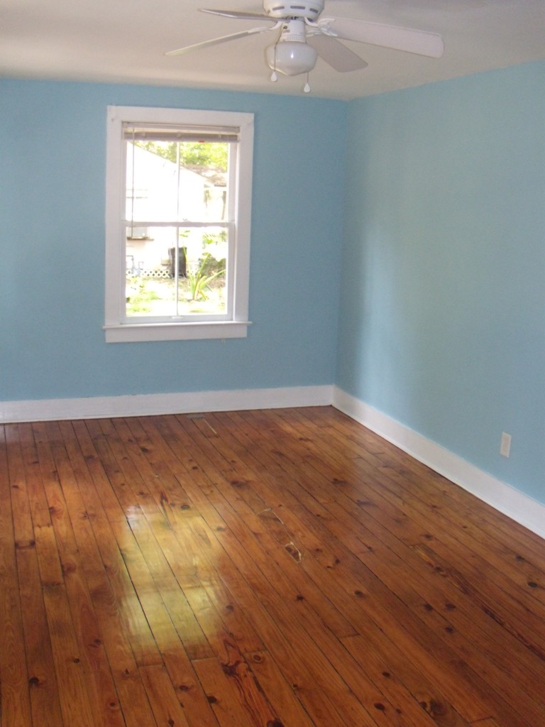 Finished heart pine throughout, vinyl bath & kitchen